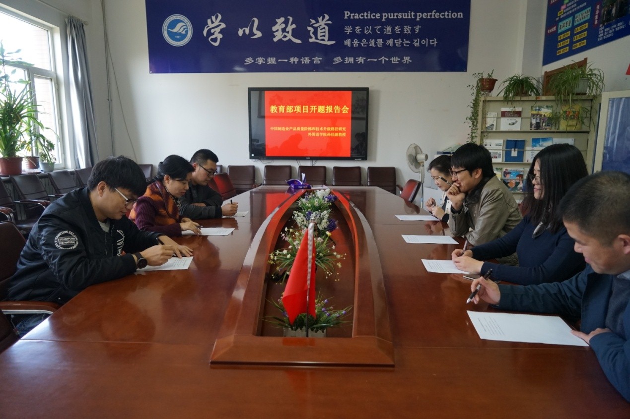 学院孙佳副教授申报的“中国制造业产品质量阶梯和技术升级路径研究”获批立项,实现了外国语学院教育部项目零的突破。在开题报告会上,孙佳副教授就项目的研究意义、研究计划、预期的主要研究成果以及项目组成员间的分工协作等方面做了周密细致的安排,并就项目研究的时间表等与全体成员进行了详细的探讨。并指出,在科研处及学院的支持下,以教育部项目为依托,与项目组全体成员一起努力工作,力争多出成果、出好成果,实现科研水平与科研成果的双丰收。