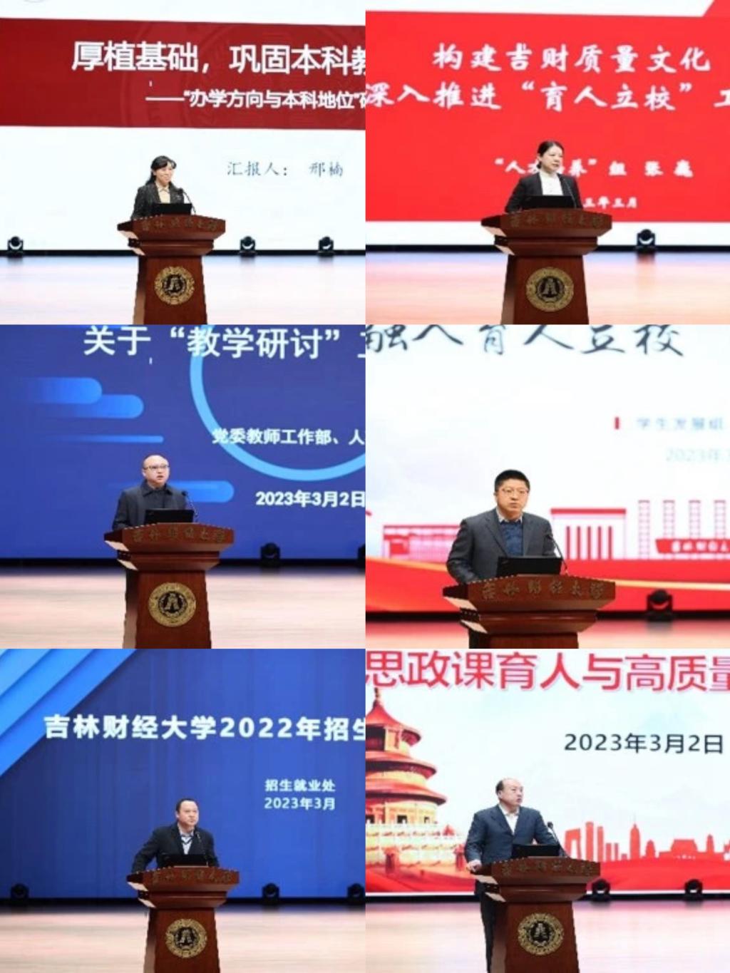 为全面贯彻落实学校第二次党代会精神,深入实施学校“十四五”发展规划,致力于建设国内一流财经大学,提高本科人才培养质量,深入推进教育教学“质量革命”,2022年6月30日下午学校召开了本科教育教学审核评建暨“育人立校”本科教育质量提升行动启动大会。校党委书记孙杰光,校党委副书记、校长童猛,校党委副书记岳宏、刘鹤,校纪委书记、监察专员丁庆东,副校长王菁华、李宝永、马秀颖,学校各职能部门负责人,各教学单位书记院长,副书记副院长,教师代表参加了启动大会。