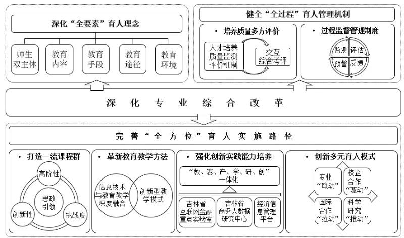 秉承“执于创新,臻于卓越”的学院精神,坚持“工学固本,财经铸魂”的发展理念,信息管理与信息系统专业以国家级一流本科专业建设为目标,突出以信息技术为支撑、信息化产业为导向的专业教学体系建设,深化育人体制机制改革,推进育人保障机制建设,紧扣国家重大战略需求,形成了“一主体、双融合、六协同”的专业建设模式,服务吉林省“一主六双”高质量发展战略和“464”新格局规划,培育各行业亟需的“产业数字化”人才。