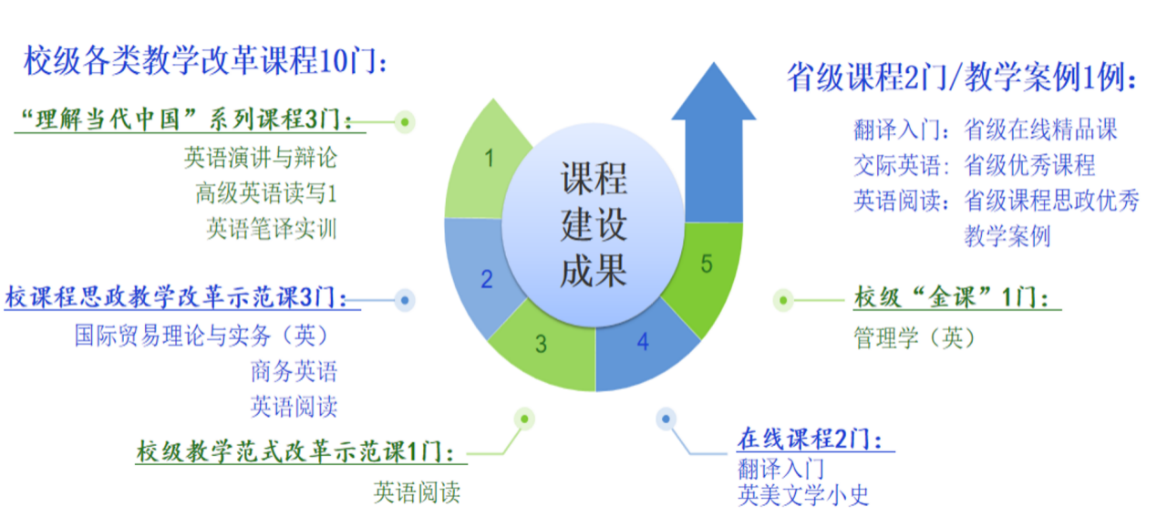 (一)形成了“外语+经贸”复合型人才培养方案。本专业根据国标要求和专业成型经验,遵循“厚基础、精专业、重实践”原则,不断优化英语专业课程体系,分层次构建通识教育、学科教育、专业教育三大课程模块体系,并依托Beat365经济学和管理学两大学科优势,使学生掌握经贸方面的基本知识与技能,突出语言技能和素养与经贸基本知识的融合;将英语技能、商务技能、二外能力、翻译能力、语言文化知识和经贸知识有机结合在一起,并按照学生的认知规律和能力发展构建,形成了外语与经贸知识相结合的复合型人才培养课程体系。