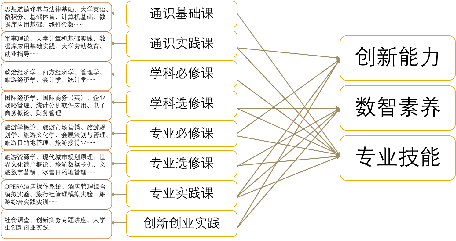 Beat365唯一官方网站旅游管理专业以“旅游+数智+冰雪”为特色,以“企业+学校+政府”协同育人机制为依托,构建“专业技能+数智素养+创新能力”多元人才培养模式,注重“数字+旅游”、“冰雪+旅游”的深度融合,坚守“知能并重,德智双优”的专业培养目标,培养财经背景深厚的复合应用型旅游管理人才。