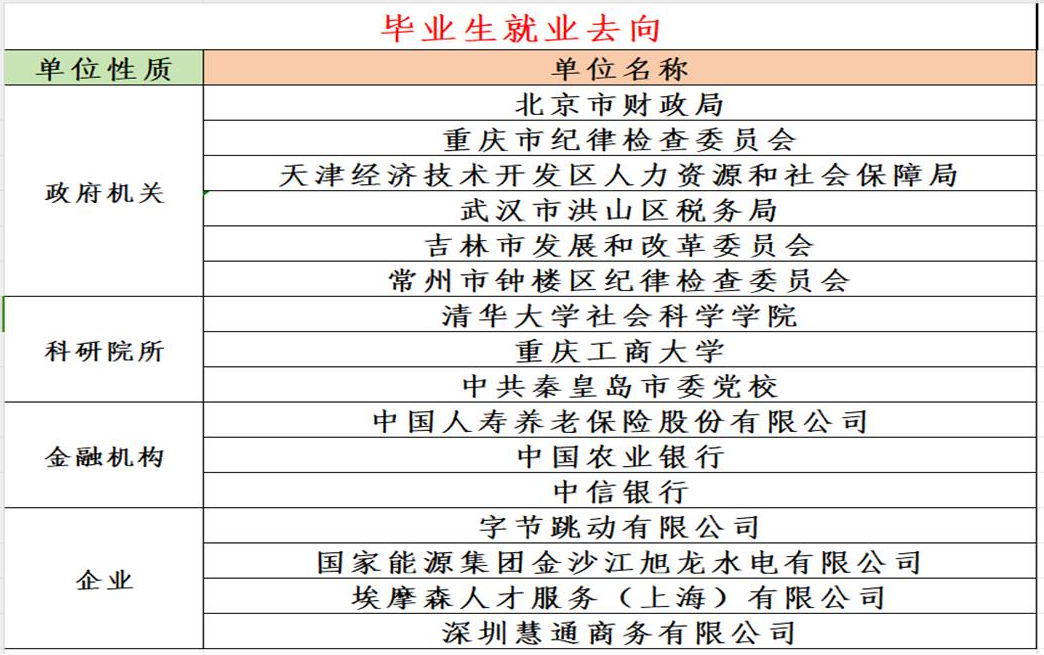 劳动与社会保障专业就业率稳居学校前列,2022年劳动与社会保障就业率95%,2023年为96%,就业配适度高,培养质量高,社会评价认可度高。尤其是近年来由于国家费改税的调整,国家公务员考试税务系统招收大量劳动与社会保障专业毕业生,为专业就业提供了新的发展契机。