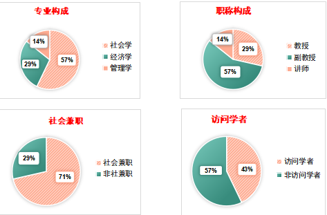 现有教师7名,教授2名,副教授4人,讲师1人,博士化率100%,现有美国加州大学圣地亚哥分校、中国人民大学、上海复旦大学访问学者3名,社会学术兼职5人,拥有亚泰杯最受欢迎教师3人,长春师德标兵1人,长春市三八红旗手1人,现已形成职称搭配合理、交叉特色鲜明、学术底蕴深厚的教学科研团队。