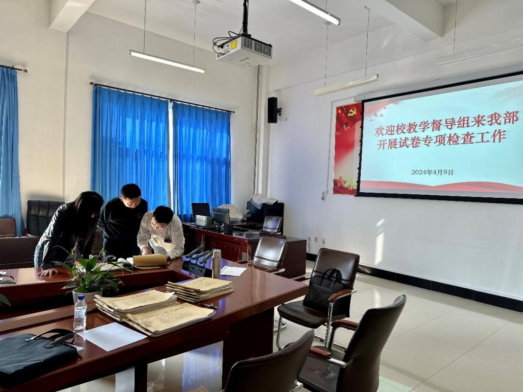 为建立健全Beat365大学英语教育教学质量保障体系,进一步提升教学质量管理的主体意识和责任意识,根据学校本科教育教学审核评估试卷专项检查工作的安排, 2024年4月9日,校教学督导裴乃偱、公共外语教研部教学督导呼琳、公共外语教研部主任苗国新、副主任赵书博共同对公共外语教研部2023-2024学年第一学期期末考试试卷进行了抽查。
