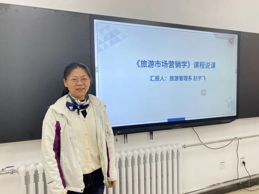 随后,开展了“教师说课程”活动。继4月3日各个专业分散开展说课程活动之后,各专业推选优秀教师代表参加本次学院层面说课程展示活动。在各系推选下,旅游管理系赵宇飞、物流管理系姚洪权、工商管理系刘燕琪、人力资源管理系刘丹、市场营销系韩成五位教师进行了“教师说课程”活动分享。说课内容涵盖课程在专业中的功能和地位、课程目标、教学设计思路、教学内容选取、课程思政建设、教学组织形式、学生学习方法及考核评价方式、学生学习后应当具备的响应能力。